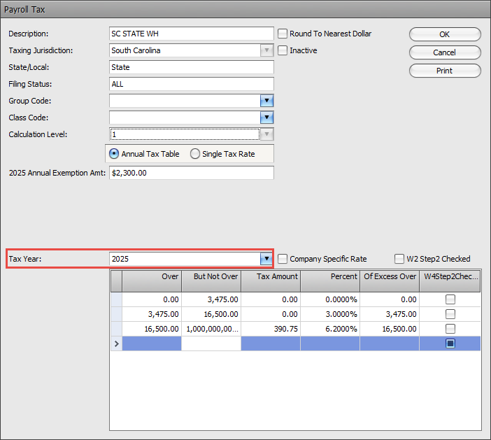 To help you update your State Income Tax Withholding Tables, we will copy the prior year tables to the new year at the same time as we update the Federal Income Tax Withholding Tables. You will only need to edit the tables for any changes that are published by your state agency.