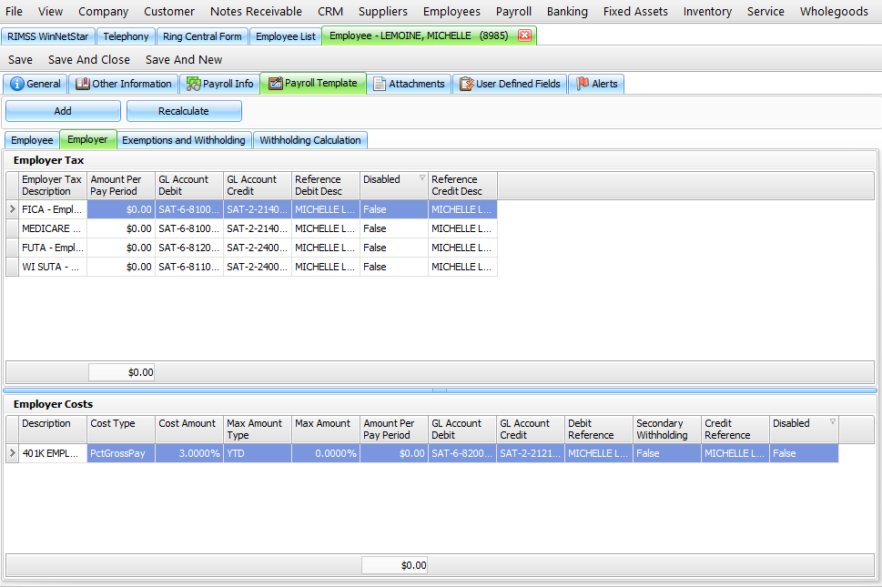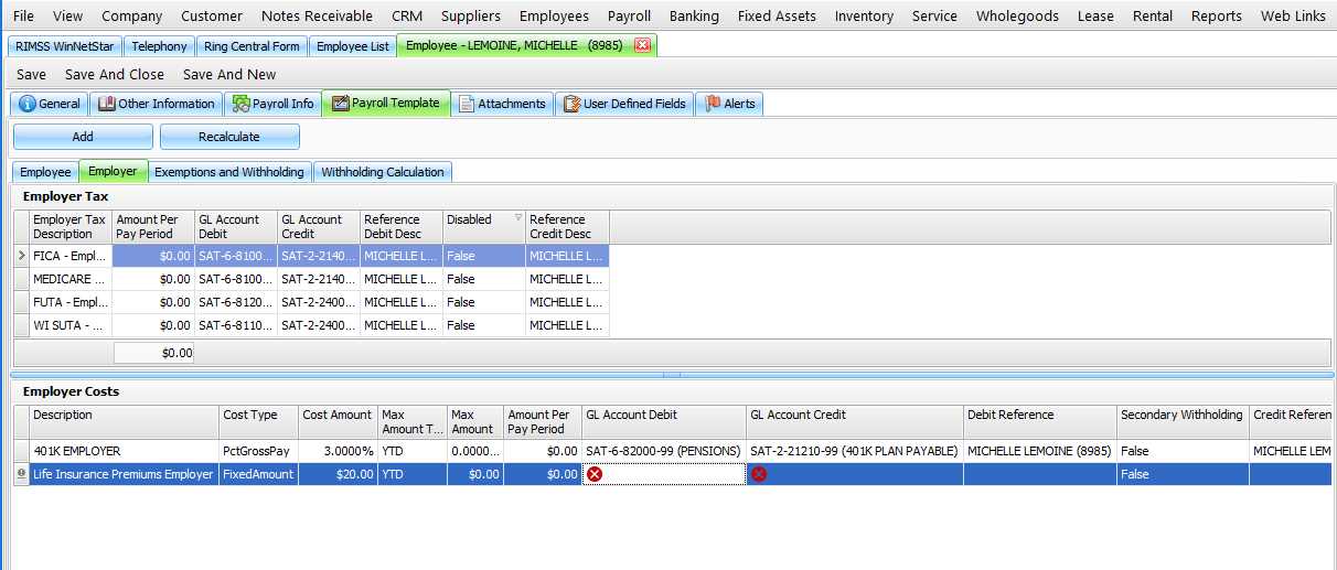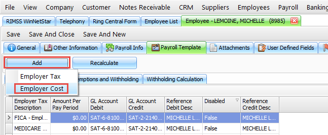 Now that the Employer Cost is saved, I can add it to my Payroll Templates.