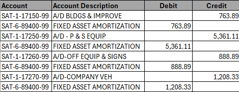 An example of a Depreciation entry for one month from the schedule above is shown here.