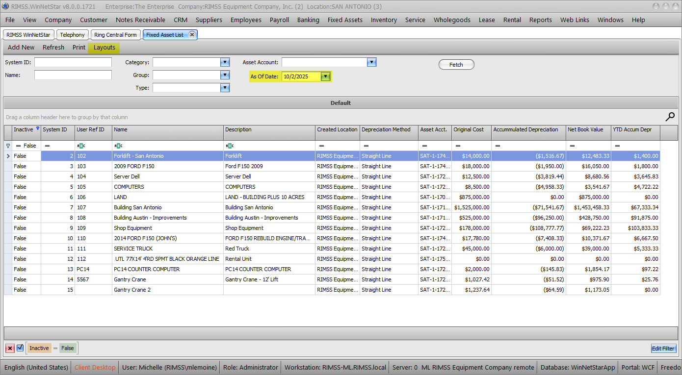 This will open the Fixed Asset List/Report. You can filter the report with pre-fetch filters or just ensure that your As of Date is set to the date you want to review and click Fetch.
