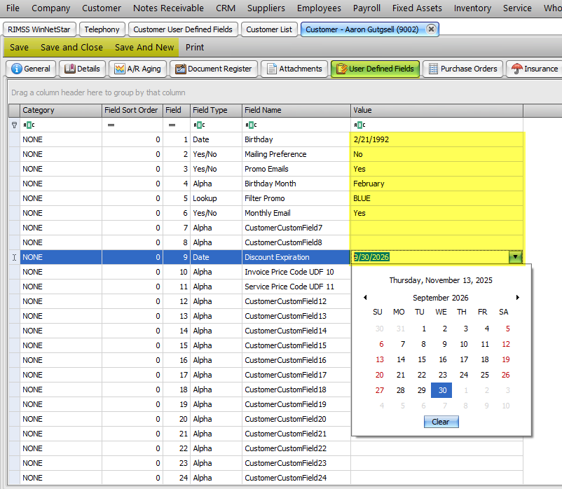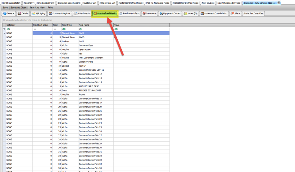 Open the Customer Master and navigate to the User Defined Fields Tab