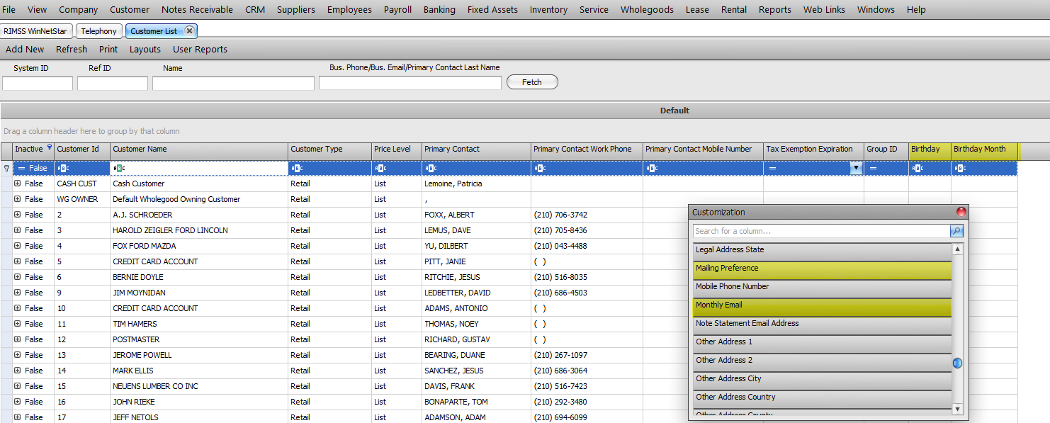 You can use the standard filters on the custom fields to assist in finding the information that you want to see. In this example, I filtered to customers that have a Birthday Month of September. I included the column for Mailing Preference and Monthly Email to help me determine the best method for sending Birthday Wishes to customers who have opted in.