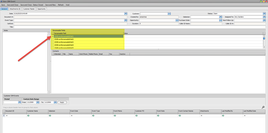 Open a new or existing CRM event through the Customer Console or by navigating to