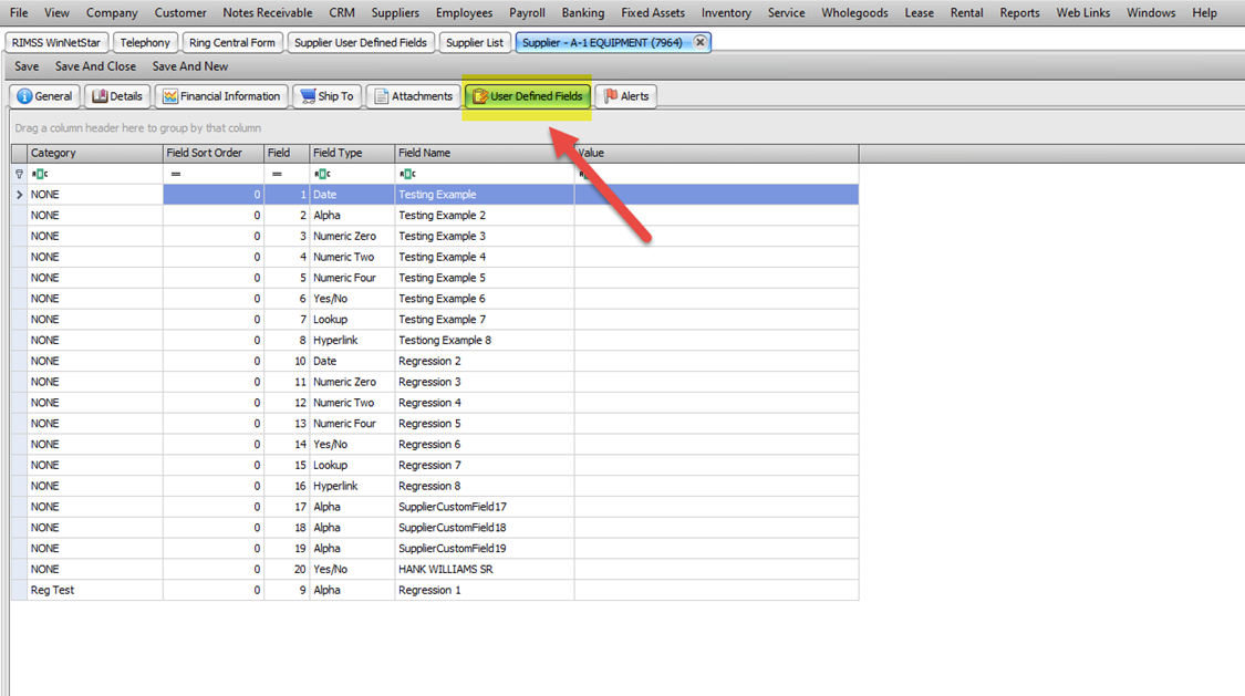 Open a Supplier Master record and navigate to the User Defined Fields tab