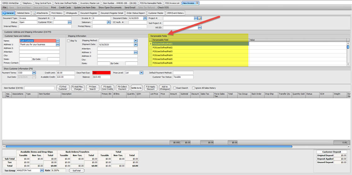 Your RIMSS system includes User Defined and Renameable Fields in many areas to assist you with capturing specialized information on Master Records and POS Documents. The chart below shows the areas where you can access the configuration area for each type if field.