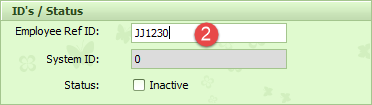 - Add the Employee Ref ID. This data field allows numbers and letters. The ID can be typed directly into the field. The Employee Ref ID will be used for clocking in and out of timeslips in RIMSS. The System Id of the employee will default into this field if you leave it blank. This field is specific to the Location that you are currently logged in. You will need to add a unique ID in this field in each of the locations where the employee will work. The Inactive box can be checked when the employee no longer works at the company. For RIMSS payroll users, you will need to mark the employee as Active again for creation of W-2 forms at the end of the year.