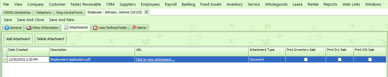 - The Attachments Tab allows you to save documents directly to the Employee Master Record. This may include scans of identification documents, signed papers, photos, or any other information you would like to maintain.