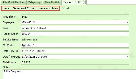 Time slips are fully editable until they are paid in the RIMSS payroll module or until the Repair Order on which they were associated is settled. Voiding the payroll document or unsettling the Repair Order will re-open a timeslip for editing. To edit a time slip, navigate to: