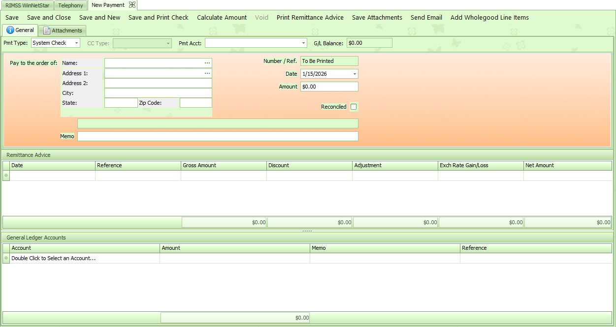 This will open a blank Payment document that you can customize to the specific type of payment that you want to create.