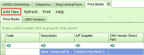 This will open the document with two tabs. There will be a tab for Price Books and a tab for OEM Vendors. On the Price Books tab, click the button for Add New at the top left.