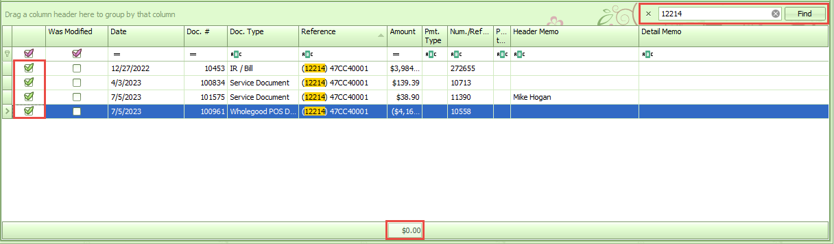Using the Find Panel Search box to verify each reference to be cleared is another method for finding and clearing transactions. This is helpful in finding posts by unit when the Reference description has changed. By using the System ID of the reference with the parenthesis is the most accurate method of finding transactions tied to a specific unit.