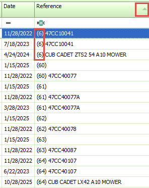If the Reference description changes during the life of the unit, Sorting by the Reference Field is another method for finding offsetting transactions. In the ungrouped grid, click on the Reference column header to sort the list. You will see each System ID will sort correctly even if the description has changed.
