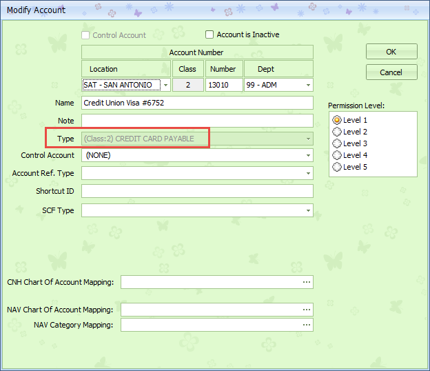There is a feature to assist you in managing company credit cards that are used for everyday purchase and for payments on Accounts Payable accounts. Central to this feature is the G/L Account Type of Credit Card Payable.