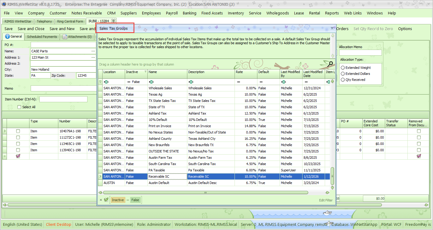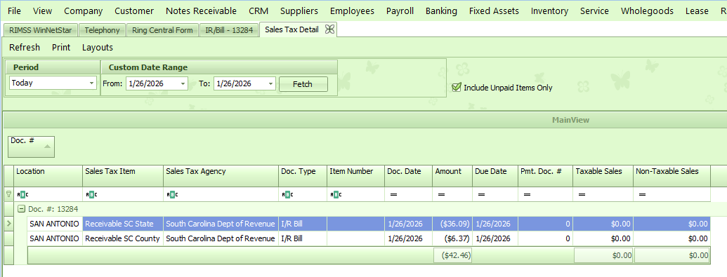 The feature to Add Sales Tax Group Items allows you to enter all line items tied to a Sales Tax Group and calculate the tax amount for each jurisdiction more easily. To use this feature, open or create an IR/Bill then click on Options, Add Sales Tax Group Items.
