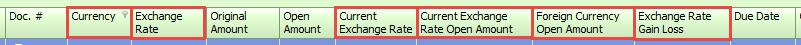 When the report opens, you will need to add the 6 columns that provide currency exchange information as shown below. To add the columns, right click on the header row and drag the columns from the popup into the grid.