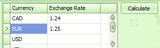 At the top of the report is a box that lists the currencies set up in the system with a box to enter current exchange rates. Select each currency with a new rate entered and click the Calculate button. As you calculate each new currency rate, the Current Exchange information fields will populate on the report according to the rate entered.