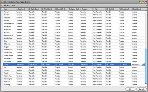 Customer Tax Status by State
