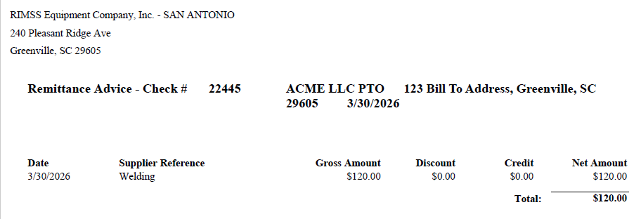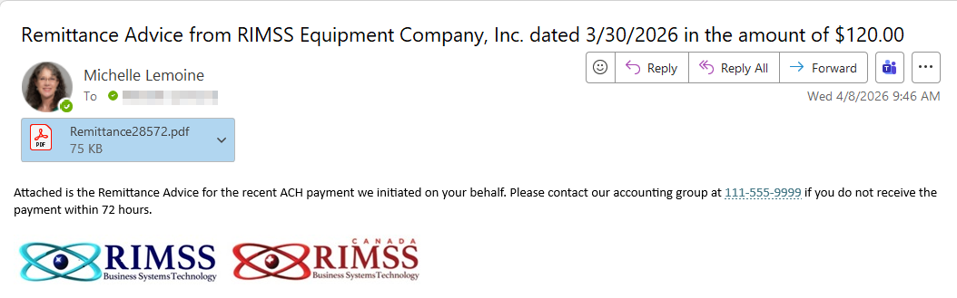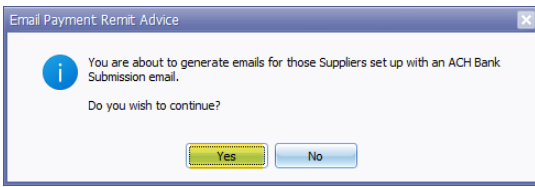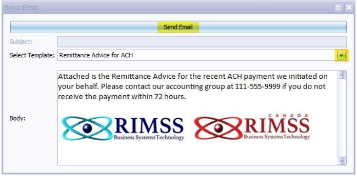 Pour envoyer aux fournisseurs une notification pour un paiement ACH exporté de RIMSS en utilisant l'interface de transfert bancaire ACH, naviguez vers :